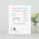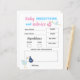 Budget baby voorspellingen en advies voor het ouderblad dat uw gasten kunnen invullen op de gender reveal party. Schattigee quiz die uw gasten kunnen spelen. Ontwerp in blauw en roze met schattige illustraties van ooievaarsvogels die een baby meisje en een baby jongen leveren. Personaliseer het of wijzig het lettertype, de kleuren en de tekst door op de knop te klikken om het ontwerp te bewerken.