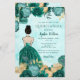 Budget Elegante Blauwgroen Turquoise Gouden Bloemen Prinses Quinceañera Quince Invitation