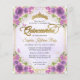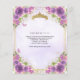 Modern Glam Bloemen Botanisch Licht Paarse Violet Pastel Goud Tiara Kroon Sparkle Glitter RSVP Verjaardag Quinceañera Invitation