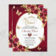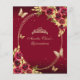 Bloemen rood goud tiara vlinder mis quinceañera uitnodiging