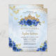 Modern Floral Royal Blue Navy Blauw Goud Tiara Vlinder Glitter Verjaardag Quinceañera Uitnodiging