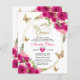 Bloemen roze goud tiara vlinder mis quinceañera uitnodiging