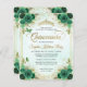 Moderne Glam Bloemen Botanische Smaragd Groen Goud Tiara Sparkle Glitter RSVP Verjaardag Quinceañera Uitnodiging