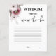 Floral Wisdom for the Mom to be Baby shower Game Voeg een verzoek aan uw gasten voor het schrijven van een paar woorden op Wisdom voor de moeder om kaart te zijn, een leuke maar boeiende activiteit die uw gasten zal verrukken! In dit levendige spel / activiteit zullen gasten iets schrijven dat ze leren over het moederschap of iets uit hun ervaring met een schoonheid van de anemonen. Met florale illustratie, onze spelkaarten brengen een uitbarsting van kleur en plezier aan uw evenement. De vrolijke pruim ad witte accenten en speelse lettertypes maken dit spel een heerlijke aanvulling op elk baby shower decor. Met onze Floral Wisdom for Mom-to-be Baby shower Kaart, kunt u een scheutje grappige praatjes en een vleugje opwinding toevoegen aan uw feest, waardoor het een gedenkwaardig evenement is voor de aanstaande moeder en al uw gasten.