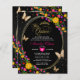 Bloemen zwart goud tiara vlinder mis quinceañera uitnodiging