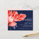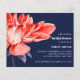 Verbluffende en elegante Bridal-doucheuitnodiging, met een prachtige Dahlia Flower in bloom in het waterverf palet van rijke oranje rode nuances en blauwe paarse bladeren links op de kaart. Uw partijdetails worden gracieus getoond op het recht, in een chemische combinatie van gewaagde en serif doopvont in klassieke grijze kleur. Kaart omgekeerd in een contrasterende grijze kleur met ruimte voor extra tekst zoals registratie, website, die door of andere nuttige informatie wordt ontvangen. Zeer eenvoudig aan te passen gebruikend de sjabloon. OPMERKING: OPMERKINGEN ZIJN OPGENOMEN.
