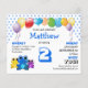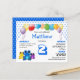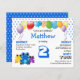 Een leuke uitnodiging van een blauw jongetje op zijn verjaardagsfeestje, met een trio levendige, breed geoogste kikkers en een reeks kleurrijke ballonnen. Op de voorzijde, kunt u de naam en de leeftijd van het kind, plus de datum, rsvp details en plaats aanpassen. De achtergrond bevat een modern patroon in blauw, dat gekoppeld is aan de hoofdleeftijd, en dit patroon wordt herhaald aan de achterkant. Het enige wat u moet doen is het getal één keer wijzigen en het zal automatisch het patroon wijzigen. (Dit zijn budgetuitnodigingen van goede kwaliteit, dus vergeet niet om enveloppen en/of overdrachtontwerp toe te voegen aan kaartvoorraad indien gewenst.) Deze uitnodiging zou geweldig zijn voor kinderen die van kleurrijke, breedgeoogste kikkers en ballonnen houden. Andere variaties op dit thema zijn beschikbaar.