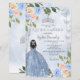 Budget Elegant Stoffig Blauw Zilver Bloemen Prinses Vlinders Quinceañera Uitnodiging