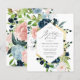 Nodig uw bruidsbrunch gasten in stijl uit met deze elegante maatse begrotingsuitnodiging met handbeschilderde blauw en wazige roze waterverf rozen met groen. Personaliseer met elk van uw bruidbrunch details in zwarte moderne zwarte manuscripttypografie. De achterkant van de kaart heeft een bijbehorend roos floreel patroon. Ontworpen door Susan Coffey.