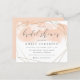 Deze klokkenluidruchtige doucheuitnodiging is voorzien van een wazige roze waterverf op wit met een faux gouden folie geometrische grens rond een trendy handgeschreven en serif typografie. Ideaal voor vrijgezellenfeesten in de lente of de zomer. Als onderdeel van de begrotingsselectie hier op Zazzle, komen deze uitnodigingen niet met enveloppen en passen ze ook niet goed in een standaard envelop. De dichtstbijzijnde grootte is A6, maar er zal een gat van ongeveer een halve inch zijn. Als u het gebrek aan snugheid niet erg vindt, kunt u zulke breed beschikbare A6-enveloppen gebruiken. Anders, kan dit ontwerp naar een standaard 5x7 formaat (dat met enveloppen komt) worden overgebracht gebruikend het hulpmiddel van de ontwerpoverdracht. Als ruwe gids, vanaf het ogenblik van het schrijven, zouden 100 begrotingsuitnodigingen (met inbegrip van een volumekorting) rond $39 kosten terwijl 100 standaard 5x7 uitnodigingen met inbegrip van enveloppen ongeveer $135 zouden kosten. Uw kilometerstand kan variëren afhankelijk van de promotiecodes van Zazzle, de verkoop ter plaatse of prijswijzigingen.