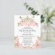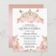 Elegante Glam Blush Roze Bloemen Goud Tiara Quinceanera Uitnodiging