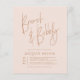 Een eenvoudig, modern design met "Brunch & Bubble" in script, met de naam van de bruid-to-be in hoofdletters en open gezicht. De feestdatum verschijnt links in een gestapelde lay-out met de plaats, het adres, en rsvp informatie aan het recht. De kaarten keren terug naar een elegant lijntekenfloreel patroon. Een minimalistisch kalligrafieontwerp - zeker om het even welke brutale brunch gebeurtenis aan te passen! Het kleurenschema is een boho-desert-achtige combinatie van wazige roze en terracotta. Er zijn meer kleurvarianten beschikbaar in onze winkel. Als onderdeel van de budgetselectie op Zazzle, is dit blad geen standaard nodig grootte of papierkwaliteit. Als u dit ontwerp op een uitnodigingskaart wilt, kunt u het in onze winkel vinden of de Zazzle Make Machine gebruiken om het over te brengen op het product van uw keuze. Voel je vrij om me te berichten met ontwerpgerelateerde vragen!