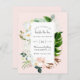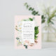 De botanische bruiddoucheuitnodiging met waterverf tropische groen tegen een wazige roze achtergrond. De details van uw vrijgezellenfeest worden weergegeven met een stijlvolle typografie. Als onderdeel van de begrotingsselectie hier op Zazzle, komen deze uitnodigingen niet met enveloppen en passen ze ook niet goed in een standaard envelop. De dichtstbijzijnde grootte is A6, maar er zal een gat van ongeveer een halve inch zijn. Als u het gebrek aan snugheid niet erg vindt, kunt u zulke breed beschikbare A6-enveloppen gebruiken. Anders, kan dit ontwerp naar een standaard 5x7 formaat (dat met enveloppen komt) worden overgebracht gebruikend het hulpmiddel van de ontwerpoverdracht. Als ruwe gids, vanaf het ogenblik van het schrijven, zouden 100 begrotingsuitnodigingen (met inbegrip van een volumekorting) rond $39 kosten terwijl 100 standaard 5x7 uitnodigingen met inbegrip van enveloppen ongeveer $135 zouden kosten. Uw kilometerstand kan variëren afhankelijk van de promotiecodes van Zazzle, de verkoop ter plaatse of prijswijzigingen.