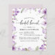 Deze elegante uitnodiging van ons Lila Lavender Floral collectie kenmerkt schattige bloemen in stoffige lila-lavender tonen met delicaat groen, in combinatie met een klassiek modern script lettertype. Ideaal voor voorjaar, zomer en herfst feestjes!