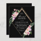Deze Black Floral Boho Bridal Shower Invitations - bevat witte handgeschreven en elegante scripttekst met gouden lijst, bestaande uit pekroze bloemen, vruchten en groene bladeren op de zwarte achtergrond. De achterkant van de bruidsuitnodiging is zwart met een zwarte laag. Houd er rekening mee dat enveloppen NIET bij dit ontwerp zijn inbegrepen. Als je enveloppen nodig hebt, controleer je collectie of koop je deze los van de markt.