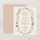 Een budgetelegante brudale doucheuitnodiging in boho zomerbloemthema dat de wildbloemen van de waterverf en groen met een boogvormig vormelement kenmerkt dat de details van het vrijgezellenfeest benadrukt.