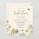 Elegante botanische bloemen en vlinders lente wilde bloemen betaalbare bruids douche uitnodiging in een pastel delicaat kleurenpalet over een crème champagne achtergrond.