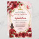 Moderne Bourgogne Maroon Rood Glitter Sparkle Floral Roos Vlinderprinses Tiara Crown Quinceañera Verjaardagsuitnodiging