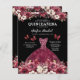Vier uw speciale dag betaalbaar met de Budget Bourgogne Gold Tweetalige Spaanse Quinceañera Uitnodiging. Dit elegante maar kosteneffectieve ontwerp heeft diepe bordeauxtinten en gouden accenten die een vleugje luxe toevoegen aan uw evenement. Het tweetalige formaat, met tekst in zowel het Spaans als het Engels, zorgt ervoor dat alle gasten zich opgenomen voelen. Perfect voor een quinceañera met een beperkt budget, de uitnodiging behoudt een verfijnde en stijlvolle uitstraling, biedt sophisticatie zonder afbreuk te doen aan de betaalbaarheid. Nodig vrienden en familie uit om deel te nemen aan je grote dag met deze prachtig gemaakte, betaalbare optie.
