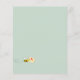 Een uitnodiging voor een bruid om te worden. Een chic witte achtergrond. Versierd met witte watercolor bloemen (pioen) eucalyptus groen, bladeren en takjes, en een leuke blije lachende bij die een enveloppe draagt. Personaliseer en voeg een naam en feestdetails toe. Zwarte letters. De tekst: Bridal Shower en de naam van de bruid staan geschreven in een moderne handgeschreven lettertype. Achterkant: groene achtergrondkleur en de blije lachende bij.