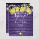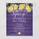 Met citroenen groen en mooie slingerlichtjes op een paarse rustieke houten achtergrond, kan deze leuke uitnodiging voor een bruiloftsfeest op een budget worden gepersonaliseerd met uw speciale evenementeninformatie. Ontworpen door Thisisnotme