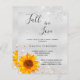 Een modern, elegant bruiloftsfeest. Een nep zilveren metalen achtergrond versierd met nep goud- en zilverglitterstof en een zonnebloem. Personaliseer en voeg een naam en feestdetails toe. Zwarte letters. Met de tekst: Verliefd worden