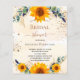 Een witte en gouden watercolor achtergrond versierd met zonnebloemen, eucalyptus groen en gouden bladeren en namaak goud glitterstof. Personaliseer en voeg een naam en feestdetails toe.