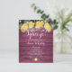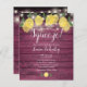 Met citroenen, groen en mooie slingerlichtjes op een roestige, burgundyrode houten achtergrond, kan deze leuke budget bruids-shower uitnodiging worden gepersonaliseerd met jouw speciale evenement informatie. Ontworpen door Thisisnotme