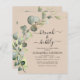 Budget Brunch en Bubbly Eucalyptus Terracotta Greenery Succulente Botanische Waterverf Emerald Green Spring Wedding Bridal Shower Uitnodigingen op een witte achtergrond - bevat prachtige en elegante scripttypografie met moderne botanische bladeren en groen voor de speciale bruid om te vieren.