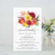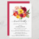 Elegant herfst flower bouquet topjes deze herfstbruid brunch bubbly uitnodiging. Bogundy red, wazige roze, heldere gele en oranje bloemen worden in groen bladeren en bladeren genaaid. De bijtende pop tegen de witte achtergrond. De eenvoudige tekst creëer een modern ontwerp. Deze uitnodiging maakt deel uit van het collectie Altijd Vrijgezellenfeesten dat de DIY-sjablonen bevat die u nodig hebt om een unieke bruiddoucheuitnodigingssuite en vrijgezellenfeest-decor en -benodigdheden te creëer.
