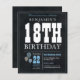 Rustic Chalkboard White Blue Balloon 18th Birthday Party Invitation