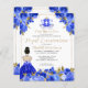 Floral Royal Blue Gold Cinderella Princess Gown Dress Gold Glitter Sparkle 15th Birthday Royal Quinceanera Invitation