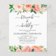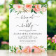 Budget Coral, Peach en white Floral en Eucalyptus Greenery Botanical Spring of Summer Brunch en Bubely Champagne Bridal Shower Invitations - omvat prachtige en elegante scripttypografie met moderne botanische bloemen en groen voor de speciale Bride om dag te vieren voor een aanstaande bruiloft.