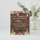 Budget Rustieke Landelijke Buitenkant op Donker Hout met Wijnrood, Oranje en Gele Zonnebloemen met Metselaars Potten op Slingerende Lichtjes Herfst of Bruiloft Drive By Bruidsuitnodiging - inclusief mooie en elegante script lettertype voor de speciale Bruid Ter Viering.