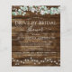 Budget Rustic Landelijk Buiten op Donker Hout met Groene Beplanting Eucalyptus en Katoen met Potten aan Slingerlamp Lente, Zomer, Herfst of Najaar Trouwfeest Drive by Bruiloft Borrel en Bruisende Uitnodigingen - inclusief mooie en elegante script lettertype voor de speciale Bruid-to-be viering.