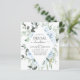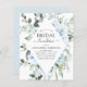 Budget Dusty Blue Floral Rozen en Eucalyptus Botanical Greenery Waterverf Spring of Summer Wedding Vrijgezellenfeest Luncheon Invitations - omvat prachtige en elegante scripttypografie met moderne tropische botanische bloemen en groen voor de speciale viering op de huwelijksdag.