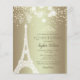 Budget Eiffel Tower Gold Sparkle Glitter Quinceañera Quince Uitnodiging