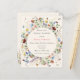Dit is een elegante en begrotingsvriendelijke uitnodiging voor de bruidsdouche. Het ontwerp is voorzien van een kleurrijke en delicate halo aan delicate wilde bloemfloralen in tinten blauw, terracotta, roze, paars en geel. De vlinders en bijen voegen de afsluitende som en de aanraking toe. U kunt alle tekst aan uw vereisten aanpassen. Gelieve te contacteren de ontwerper voor om het even welke variaties aan dit ontwerp of voor extra passende producten.