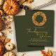 Budget Elegant Rustic Thanksgiving Autumn verliest de Wreath Dinner Party Uitnodiging met stijlvolle gouden folie-achtige typografie met een warme waterverf in oogsttonen en herfsttinten van pompoen, merlot, hazelnootbruin en honinggoudmakelbladeren. De achtergrond is een diepe schaduw van herfstgroen. Voeg eenvoudig uw gegevens en datum toe voor een verbluffende, stijlvolle uitnodiging. **Ons begrotingsdocument is kleiner, lichter en delicater, maar toch mooi! Vergeet de enveloppen niet!** Als je hulp nodig hebt of overeenkomende objecten nodig hebt, kun je contact met ons opnemen op cedarandstring@gmail.com.