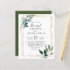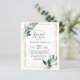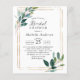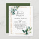 Deze Moderne Uitnodiging van de Bridal van Eucaliptus van de Begroting - kenmerkt geometrisch gouden lijst met bloeiende Twijndraden en takken Eucaliptus, modern manuscript. De achterkant van de bruidsschat is donkerolijfgroen.