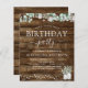 Budget Rustiek Landelijk Buiten op Donker Hout met Groene Eucalyptus en Katoen met Potten aan Lichtslingers Lente, Zomer, Herfst of Winter Verjaardagsuitnodigingen - inclusief mooie en elegante script typografie voor de speciale verjaardagsviering.