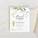 Schoonheid en plezier met deze brunch & bubbly Vrijgezellenfeest champagne luncheon-uitnodiging ontworpen met whisky soft eucalyptus takken, gelaste goudbladeren en een minieme groene achtergrond op de achterkant van de kaart. Pas gemakkelijk met de bruid-aan-zijn naam en andere belangrijke informatie aan.