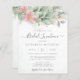 Mooie bruidmaanuitnodiging met blush roze florale waterverf eucalyptus en goudbladeren.