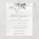 Mooie bruiloftlunchtentoon uitnodiging met waterverf eucalyptus en gouden bladeren.
