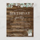 Budget Rustiek Landelijk Buiten op Donker Hout met Groene Eucalyptus en Katoen met Potten aan Snaar Licht Lente, Zomer, Herfst of Herfst Verjaardagsuitnodigingen - inclusief mooie en elegante scripttypografie voor de speciale verjaardagsviering.