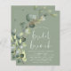 Budget Eucalyptus Green Sage Green Succulent Botanische Waterverf Spring Wedding Vrijgezellenfeest - Bridal Brunch Invitations op een witte achtergrond - bevat prachtige en elegante scripttypografie met moderne botanische bladeren en groen voor de speciale bruid om te vieren.