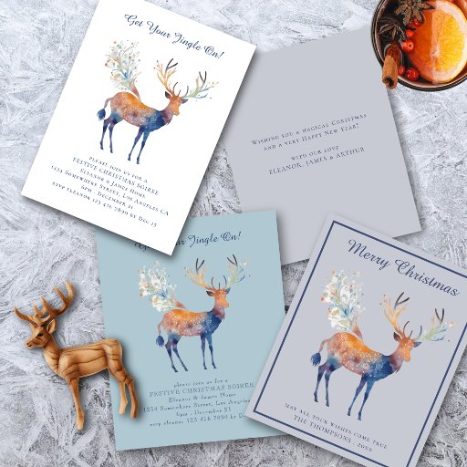 Budget Feestelijke Rendier Kerstfeest Uitnodigen. Een budget prijs kleiner 4,5 x 5,6" semi-glans kaart, vergelijkbaar in dikte met een briefkaart. Er is ÉÉN per blad. Een waterverf-effect Reindeer om uw gasten uit te nodigen voor uw vakantiebijeenkomst. Gemakkelijk personaliseren met details.
