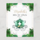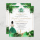 Floral Emerald Green Cinderella Princess Gown Dress Glitter Sparkle 15th Birthday Royal Quinceanera Invitation