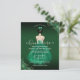 Deze elegante budgetuitnodiging uit Quinceañera kenmerkt meisjes in een groene, groene, groene, gouden bloem-geur. De achterzijde is voorzien van een groen en gouden roos patroon. Eenvoudig aan te passen door op Personaliseren te klikken.