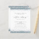 Toekomstige Vrijgezellenfeest van mevrouw Blue Glitter nodigt u uit. Een budgetprijs voor KLEINE 4,5 x 5,6 inch. Verkrijgbaar in een SEMI GLOSS 110 lb KAART STOCK dat de standaardoptie is (aanbevolen voor uitnodigingen), OF een SATIN FINISH 80 lb THINER PAPER STOCK (ideaal voor behuizingen). De enveloppen zijn een facultatieve extra en zijn lichtjes groter dan de kaartgrootte. De Toekomstige Mrs. is in een artsy geplaatst manuscript met ring en hartmotieven en de rest van de tekst u kunt gemakkelijk personaliseren. De bovenste en onderste randen aan beide zijden zijn begrensd met glitter in tinten blauw.